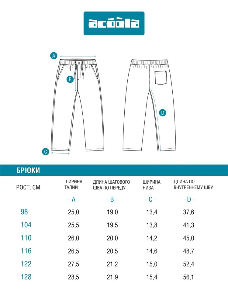 Производитель: Acoola; Российский размер: 98; Рост: 98; Обхват груди: 55; Обхват талии: 52; Обхват бедер: 57; Артикул поставщика: 20120160434; Состав: 65%ПЭ,35%Хлопок; Сезон: Осень, Зима; Год: 2025