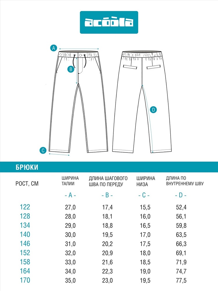 Производитель: Acoola; Российский размер: 134; Рост: 134; Обхват груди: 67; Обхват талии: 59,5; Обхват бедер: 72; Артикул поставщика: 20140160083; Состав: 52%ПЭ,46%Хлопок,2%ПУ; Год: 2025