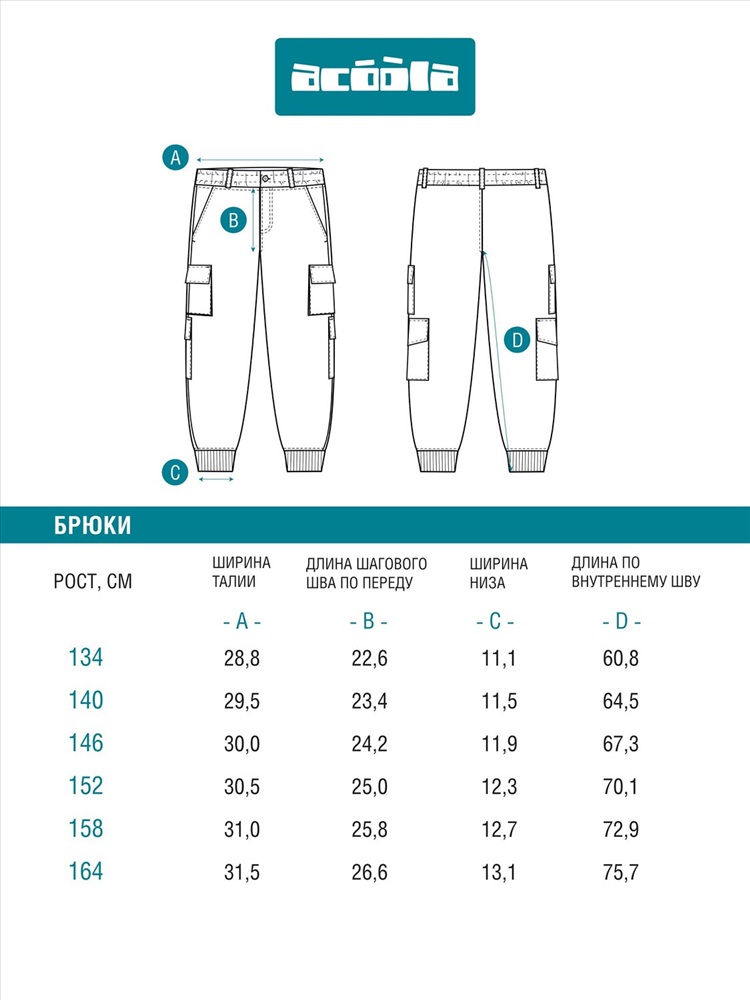 Производитель: Acoola; Российский размер: 134; Обхват груди: 67; Обхват талии: 59,5; Обхват бедер: 72; Артикул поставщика: 20210160449; Состав: 98%Хлопок,2%ПУ; Год: 2025