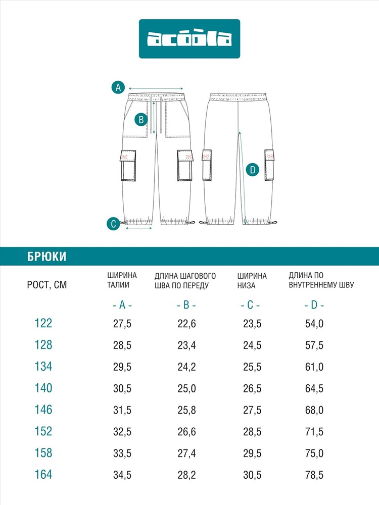 Производитель: Acoola; Артикул поставщика: 20240460019; Состав: 80%Хлопок,20%ПЭ; Сезон: Осень, Зима; Год: 2025; Российский размер: 140; Обхват груди: 70; Обхват талии: 61; Обхват бедер: 75