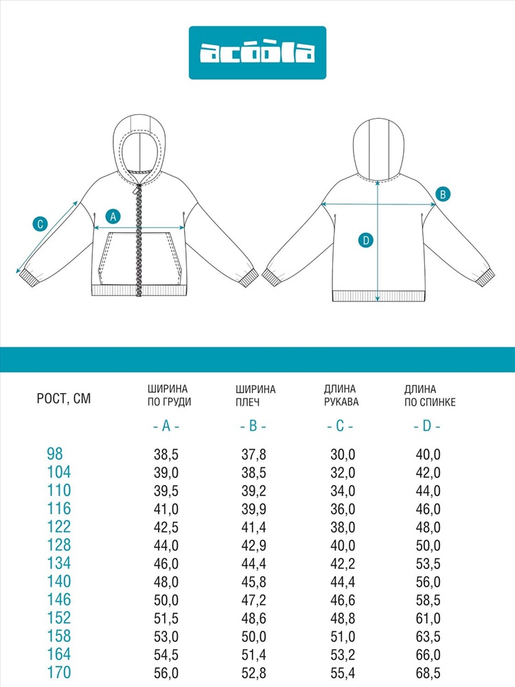 Производитель: Acoola; Российский размер: 98; Рост: 98; Обхват груди: 55; Обхват талии: 52; Обхват бедер: 57; Артикул поставщика: 20131000004; Состав: 80%Хлопок,20%ПЭ; Год: 2024