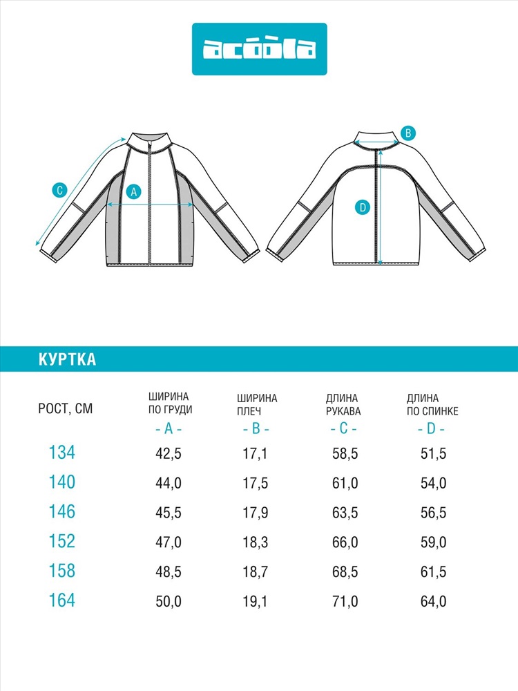 Производитель: Acoola; Российский размер: 134; Обхват груди: 67; Обхват талии: 59,5; Обхват бедер: 72; Артикул поставщика: 20211000046; Состав: 100%ПЭ; Сезон: Осень, Зима; Год: 2025