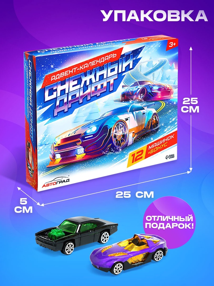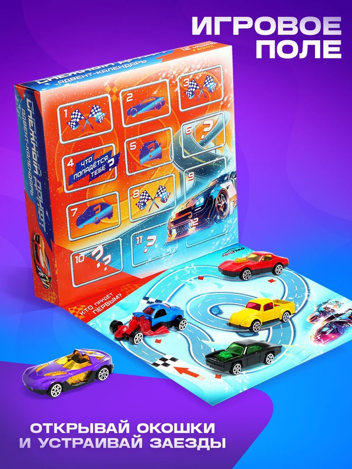 Адвент-календарь «Снежный дрифт» подарит малышу незабываемые эмоции! На протяжении 12 дней ваш ребёнок будет открывать ячейки и получать новые машинки. Дни в ожидании праздника станут незабываемыми и сказочными.
