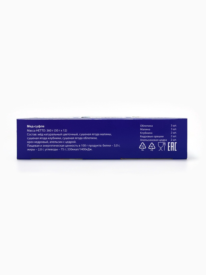 Габариты: 23,5 x 18 x 4 Страна: Россия В боксе: 11 шт Состав: См. на упаковке Материалы: см. на упаковке Фасовка: по 1 шт Индивидуальная упаковка: Термоусадочная пленка Сертификат: ЕАС Набор: Да Для кого: Унисекс В наборе, шт.: 12 Вес нетто, г: 360 Вид упаковки: Коробка картонная Символ года: Нет Тематика праздника: Новый год Адресат: Без адресата Вкус: Цитрус, Кедровые орехи, Малина, Облепиха, Клубника Составляющие набора: Мёд Вид: Мёд-суфле Возраст: Для взрослых Добавки: Облепиха, Клубника, Кедровый орех, Апельсиновая цедра, Малина Фиксированная цена: Да Комментарии к товару