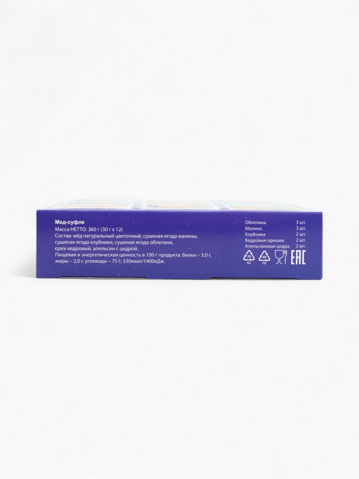 Габариты: 23,5 x 18 x 4 Страна: Россия В боксе: 11 шт Состав: См. на упаковке Материалы: см. на упаковке Фасовка: по 1 шт Индивидуальная упаковка: Термоусадочная пленка Сертификат: ЕАС Набор: Да Для кого: Унисекс В наборе, шт.: 12 Вес нетто, г: 360 Вид упаковки: Коробка картонная Символ года: Нет Тематика праздника: Новый год Адресат: Без адресата Вкус: Облепиха, Кедровые орехи, Цитрус, Малина, Клубника Составляющие набора: Мёд Вид: Мёд-суфле Возраст: Для взрослых Добавки: Малина, Клубника, Апельсиновая цедра, Кедровый орех, Облепиха Фиксированная цена: Да Комментарии к товару