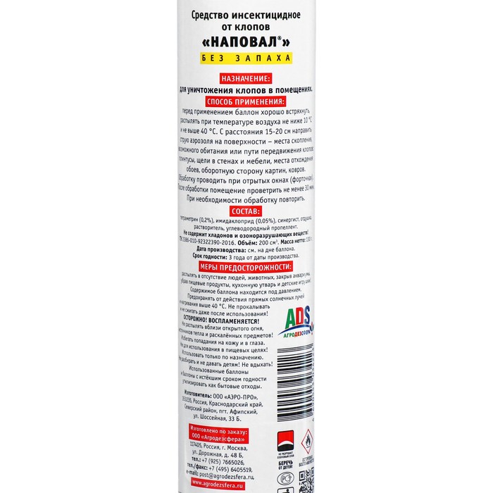 Габариты: 18 x 4,5 x 4,5 Страна: Россия В боксе: 24 шт Состав: См. на упаковке Материалы: см. на упаковке Фасовка: по 1 шт Индивидуальная упаковка: Без упаковки Сертификат: СТР Область применения: От клопов Вид средства: Отрава Способ нанесения: Распыление Действующие вещества: Имидаклоприд, Тетраметрин Форма средства: Аэрозоль Перед применением рекомендуется очистить пораженные поверхности при помощи пылесоса. Для наилучшего распространения средства по комнате распыляйте аэрозоль вверх, ближе к центу помещения. Обработайте места скопления постельных клопов (стыки деталей в кроватях, диванах, креслах, щели в стенах, под подоконниками, в местах отставания обоев, оборотную сторону картин и ковров) с расстояния 30-50 см. Постельные принадлежности обрабатывать не следует! Через 30-60 минут после обработки тщательно проветрите помещение в течение 2-4 часов. Через 14-18 дней рекомендуется провести повторную обработку для уничтожения оставшихся клопов. Содержит в составе два сильнодействующих вещества - имидаклоприд 0,05% + тетраметрин 0,15%. После распыления аэрозоль попадет на насекомых, проникает в тело через хитиновый покров и воздействует на нервную систему. Гибель насекомого наступает через несколько часов, за это время успевает заразить своих "друзей". Комментарии к товару