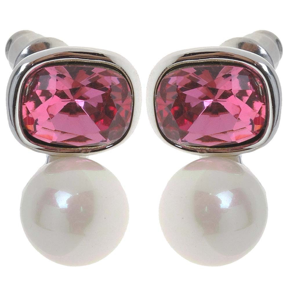 Серьги-пуссеты на гвоздиках бело-красные женские в повседневном стиле с родиевым покрытием со стеклянными вставками