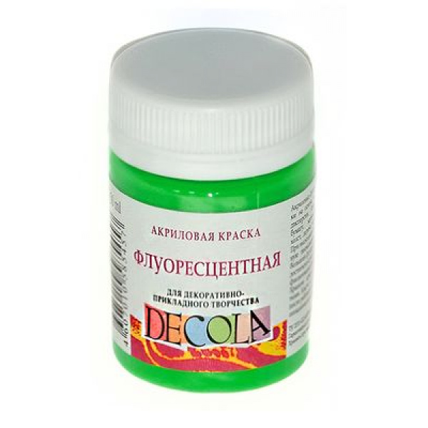 Акриловая флуоресцентная краска Декола 50 мл изготовлена на основе водной акриловой дисперсии с добавлением большого количества пигментов.