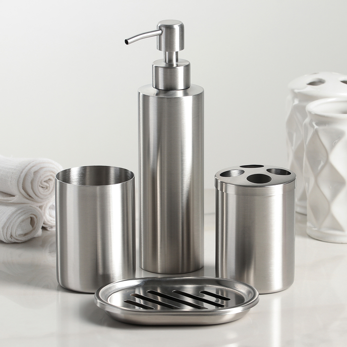 Габариты: 24,3 x 10,3 x 17 Страна: Китай В боксе: 20 набор В наборе: 4 набор Состав: Металл, пластик Материалы: металл, пластик Фасовка: по 1 набор Индивидуальная упаковка: Картонная коробка Сертификат: Не подлежит сертификации Набор: Да Цвет: Хромированный В наборе, шт.: 4 Тематика: Однотонная Рисунок: Нет Материал: Металл Тип: Настольная Настенные: Нет