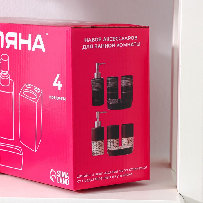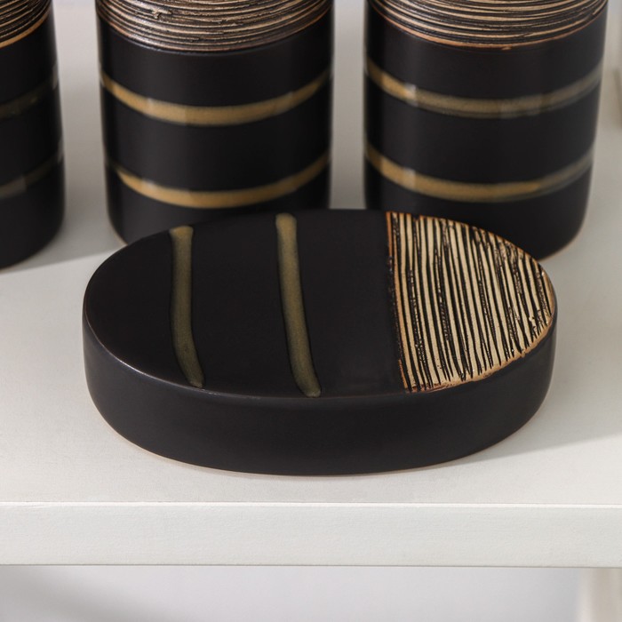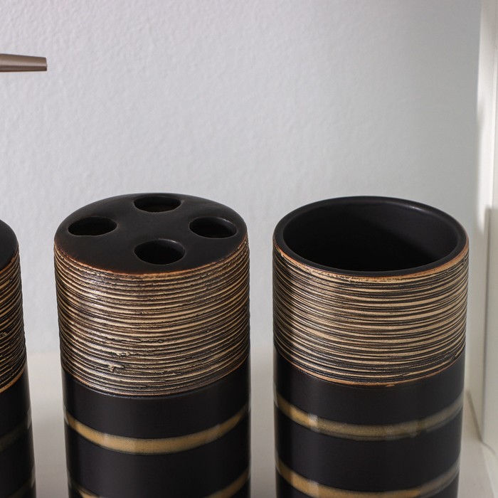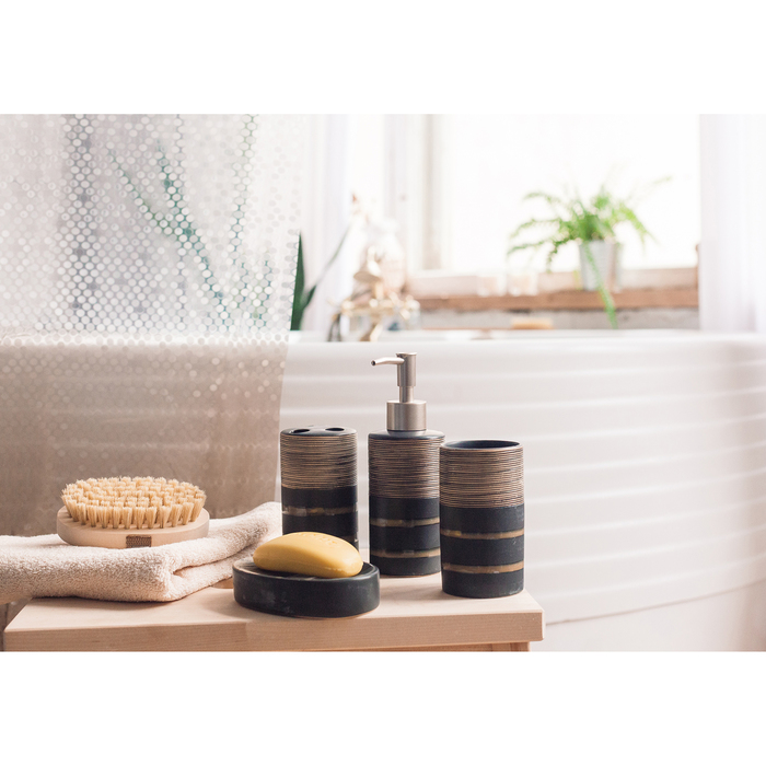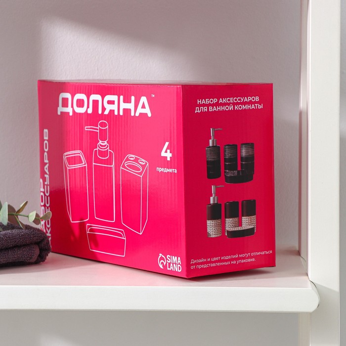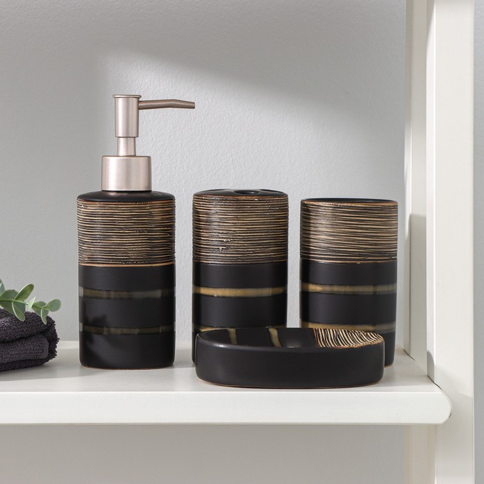 Аксессуары для ванной Доляна «Классика», 4 предмета: дозатор 300 мл, мыльница, 2 стакана, чёрные