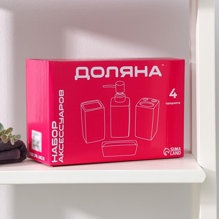 Набор аксессуаров организует пространство и станет стильным украшением Вашей ванной комнаты. За счет сдержанного дизайна данный керамический набор в ванную подойдет к любому дизайну ванной комнаты. Набор состоит из 4 предметов: 2 стакана, мыльница, дозатор.