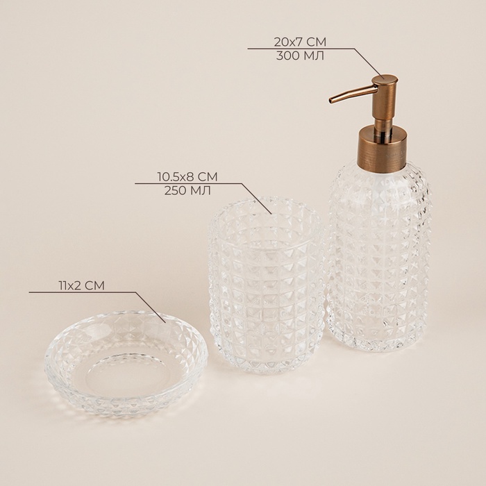 ДополнительноПреобразите свою ванную комнату с новым роскошным набором из трех предметов: дозатор, мыльница и стакан — стиль и функциональность в одном решении! Комментарии к товару