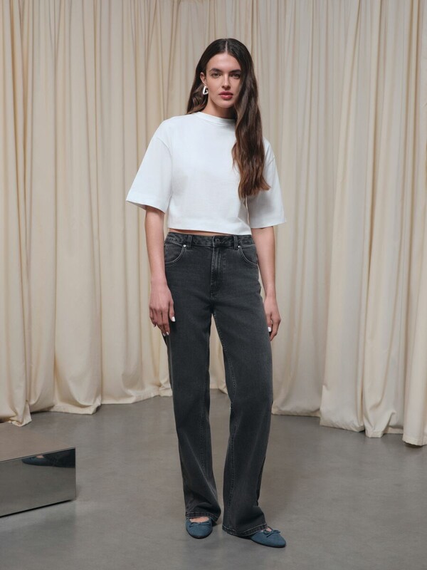 Чёрные джинсы straight идеально держат форму, прекрасно подчеркивают фигуру и не сковывают движения. Модель ULTRA LONG станет отличный вариантом для трендовых образов с брюками в пол.