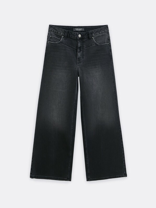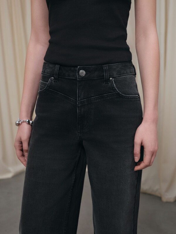 Чёрные джинсы wide leg – идеальная модель для casual-стилизаций. Декоративная кокетка спереди станет лаконичным акцентом, который поможет подчеркнуть индивидуальность и оригинальность вашего образа.