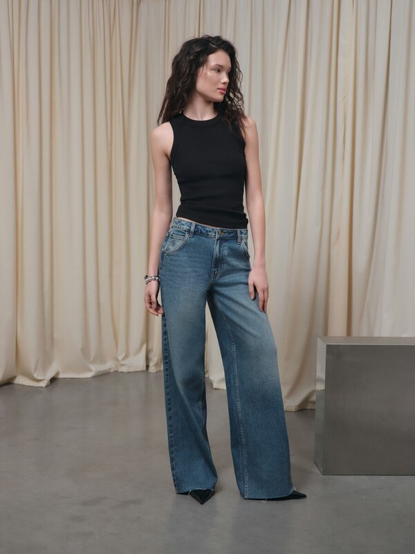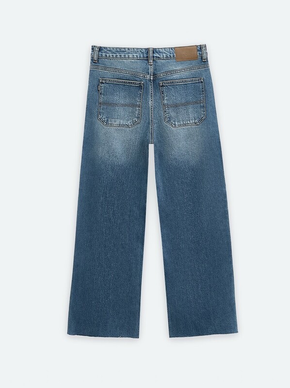 Джинсы wide leg с эффектом потёртостей прекрасно подойдут для образов в винтажном стиле. Декоративное тиснение, контрастная строчка, необработанный край придают джинсам уникальный характер. Благодаря широкому крою брюк и удобной посадке модель не сковывает движения и прекрасно вытягивает силуэт.