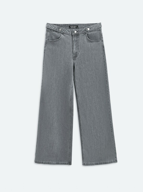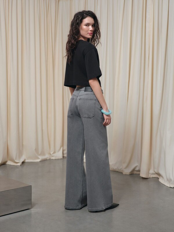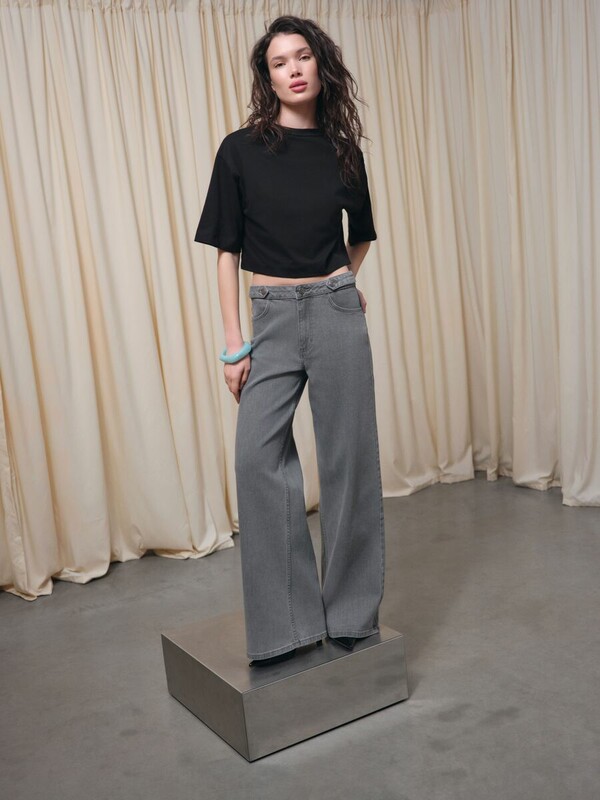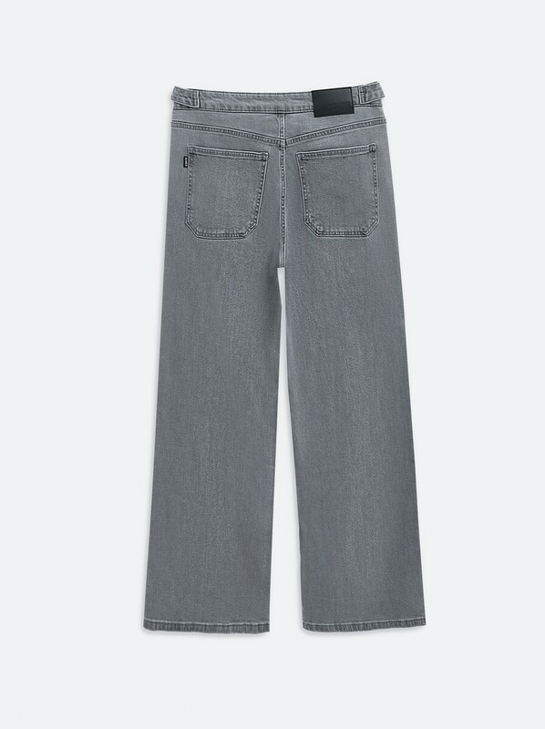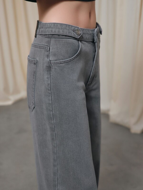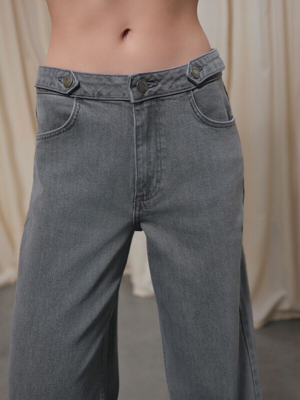 Джинсы wide leg серого цвета с декоративными патами на поясе помогут создать лаконичный расслабленный образ и подчеркнут его индивидуальность. Благодаря широкому крою брюк и комфортной посадке джинсы не сковывают движения и визуально вытягивают силуэт.