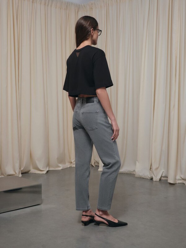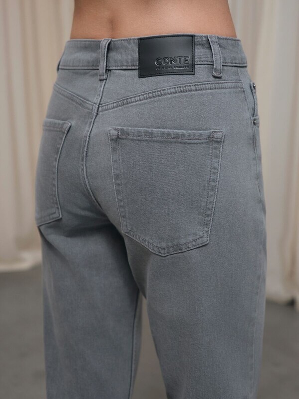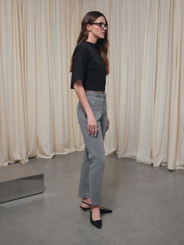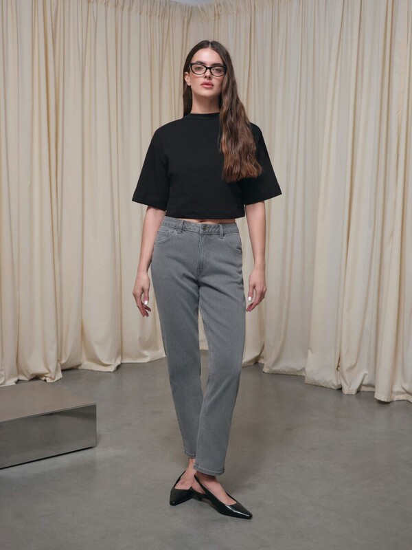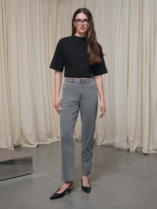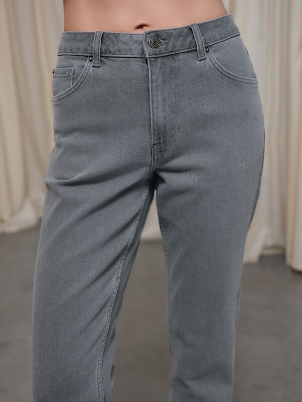 Джинсы mom в пепельном оттенке идеально подходят для расслабленного повседневного стиля. Модель поможет создать непринуждённые стильные луки, а её умеренно свободный силуэт прекрасно подчеркнёт фигуру.