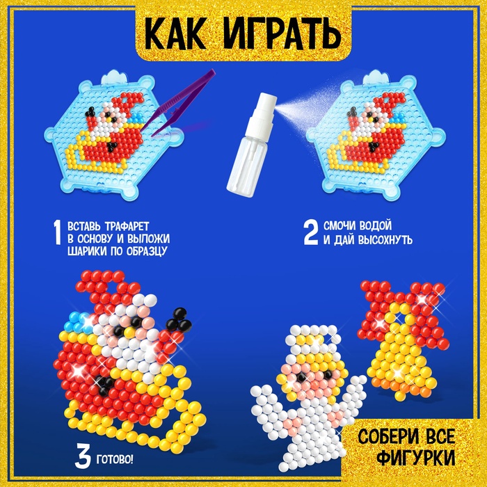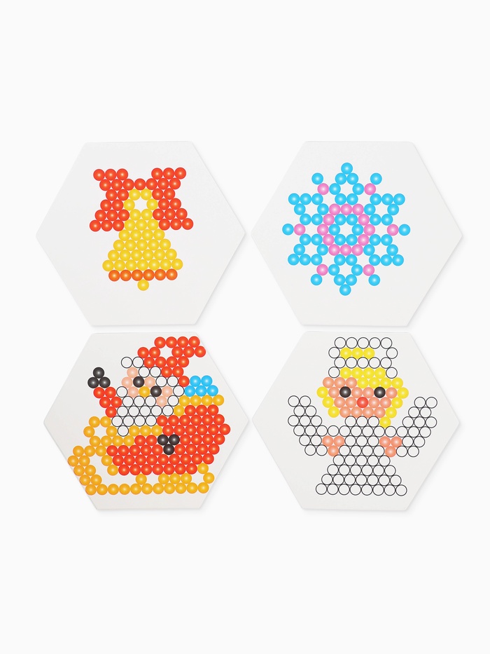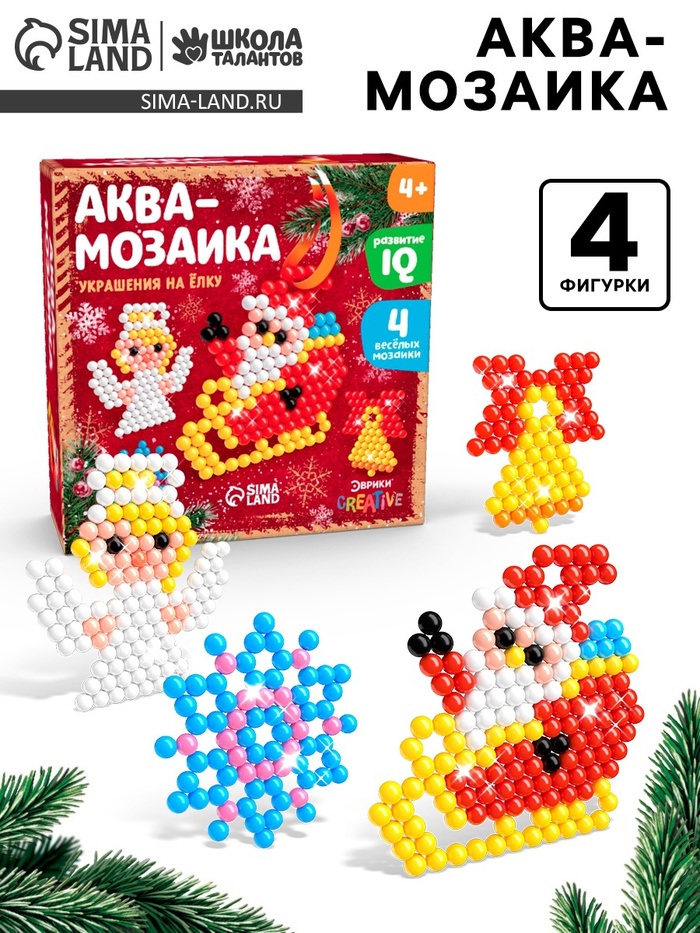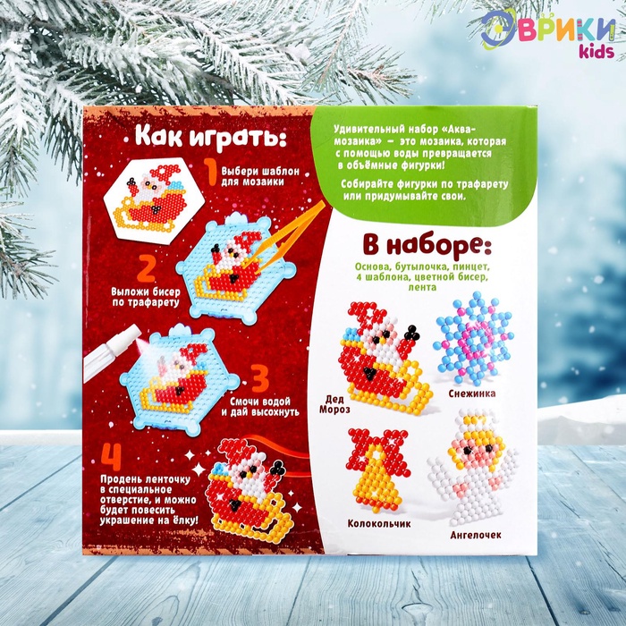 С аквамозаикой от торговой марки «Эврики» ребёнок соберёт объёмные фигурку из цветных бусинок. Детали плотно скрепляются друг с другом. Из бисера можно сделать праздничное украшение на ёлку.