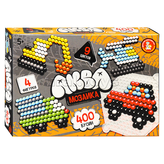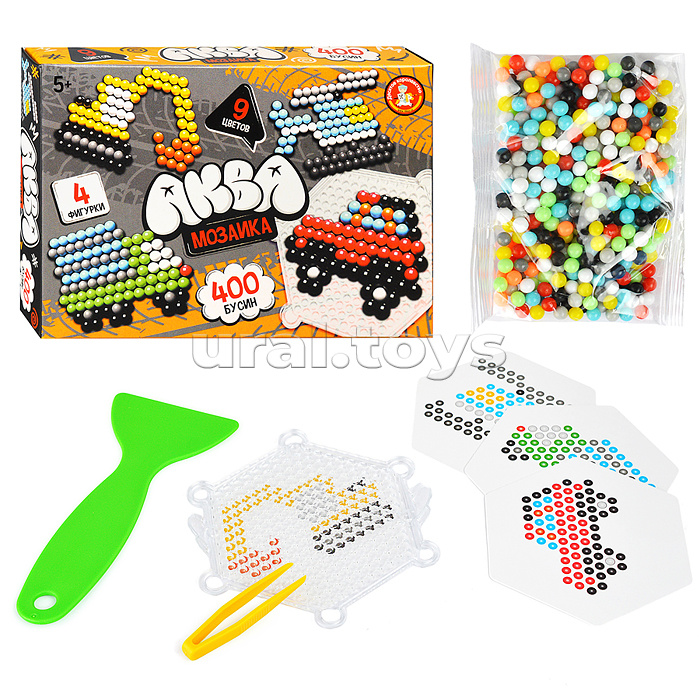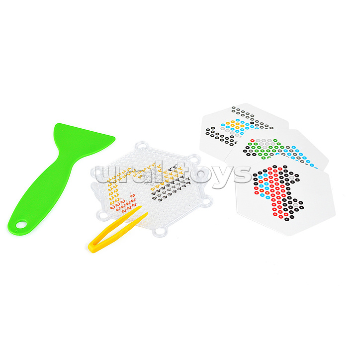 В наборе: - бусины 400 шт. - картинки 4 шт. - пинцет. - флакон с распылителем. - планшет. Материал: картон. Соответствует требованиям безопасности продукции. Для детей от 5 лет.