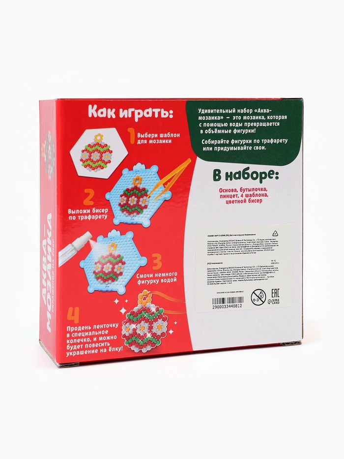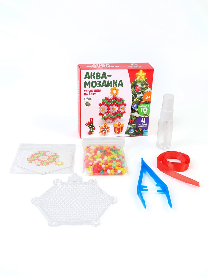 Аквамозаика «Украшения на ёлку» скрасит дни в ожидании Нового года и поможет весело и с пользой провести время. Ребёнок соберёт 4 объёмных фигурки из шариков-пикселей, потренирует мелкую моторику и внимание.