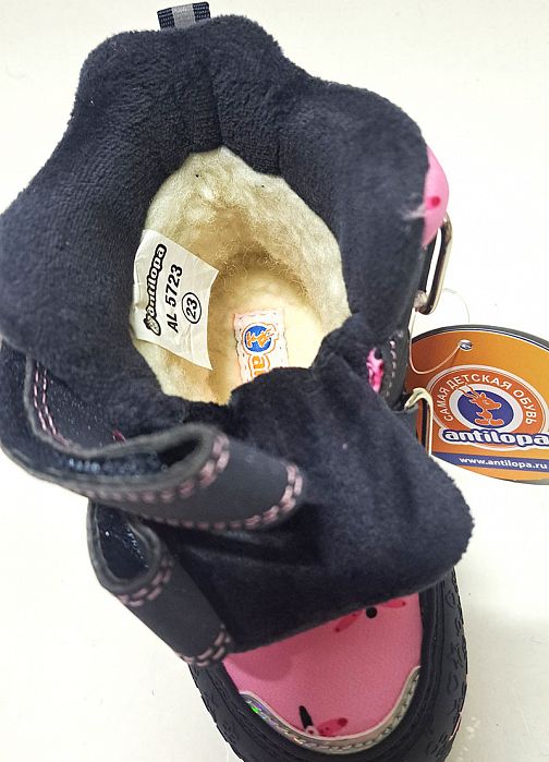 Артикул: AL5723 син Торговая марка: ANTILOPA Сезон: зимние Материал верха: Влагонепроницаемый текстиль + Кожа искусственная Материал подкладки: Шерсть натуральная Материал стельки: Шерсть натуральная Пол: девичьи Размерная группа: ясельно-малодетская Обувь с мембраной. Мембрана отводит влагу наружу, но удерживает тепло. Комментарии к товару
