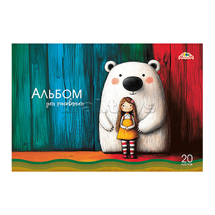 Альбом для рисования, 20 листов, формат А4, плотность 100 гр/м2. Внутренний блок - высококачественная офсетная бумага. Обложка - мелованный картон, полноцветная печать с защитным ВД-лаком. Крепление - скоба.