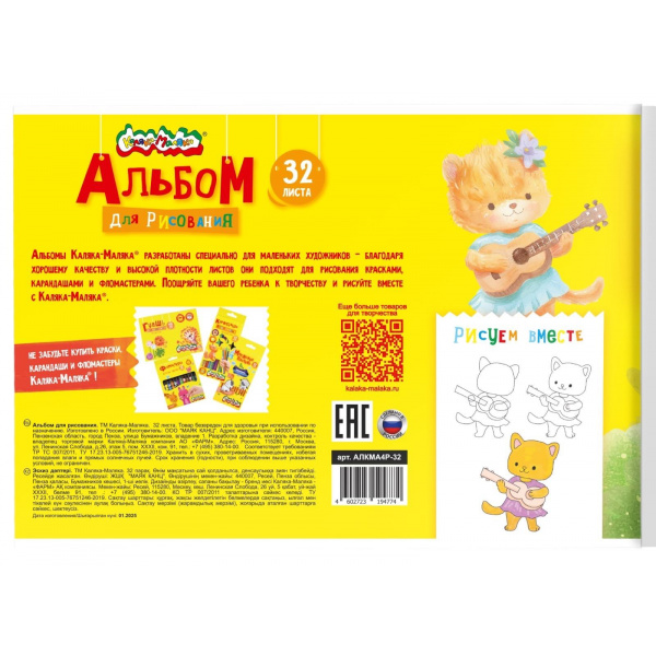 Альбом Каляка-Маляка является оптимальным решением для детского творчества: листы не просвечивают и не деформируются при намокании и высыхании, поэтому подходят для рисования красками, карандашами и фломастерами.