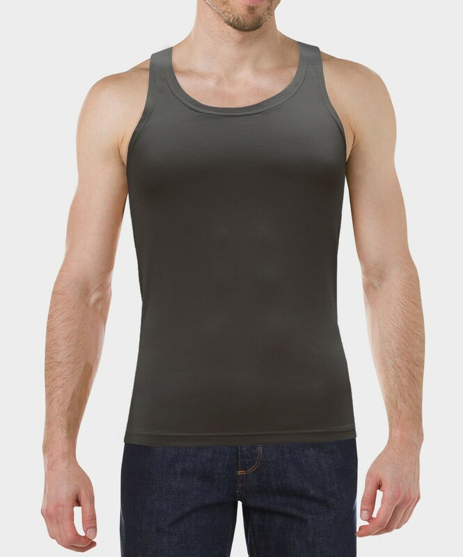 Майка мужская с зауженными шлейками, с овальным глубоким вырезом горловины. Прямой силуэт, стандартной длины - классическая модель.
