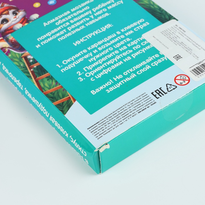 Габариты: 19 x 11 x 25 Страна: Китай В боксе: 167 шт Состав: Картон, пластик Материалы: картон, пластик Фасовка: по 1 шт Индивидуальная упаковка: Цветная картонная коробка Габариты товара: 16,2 см × 10,6 см × 2,5 см Сертификат: ЕАС Причина уценки: нарушена упаковка Для кого: Унисекс Размер, см: 10 х 15 Ширина, см: 10 Высота, см: 15 Возраст: От 3 лет Тематика: Новогодняя, Детская Символ года: Нет Тематика праздника: Новый год Ориентация изображения: Вертикально Материал для аппликации: Стразы Тип выкладки: С частичным заполнением Для создания: Открытки Составляющие набора: Товары для творчества Форма страз: Круглые Тип основы: Картон Фиксированная цена: Да Алмазная мозаика — это увлекательный вид творчества, который понравится любому малышу! Ребёнку предстоит разложить кристаллики карандашом по пронумерованной схеме, заполнив всё полотно. Основа с клеевым покрытием будет надёжно удерживать стразы. На ней уже обозначены необходимые оттенки. В наборе есть небольшой мольберт: с ним готовое творение можно расположить на полке или столе без дополнительных креплений. В таком интересном оформлении сверкающая картина будет выглядеть как предмет искусства. Как создать мозаику