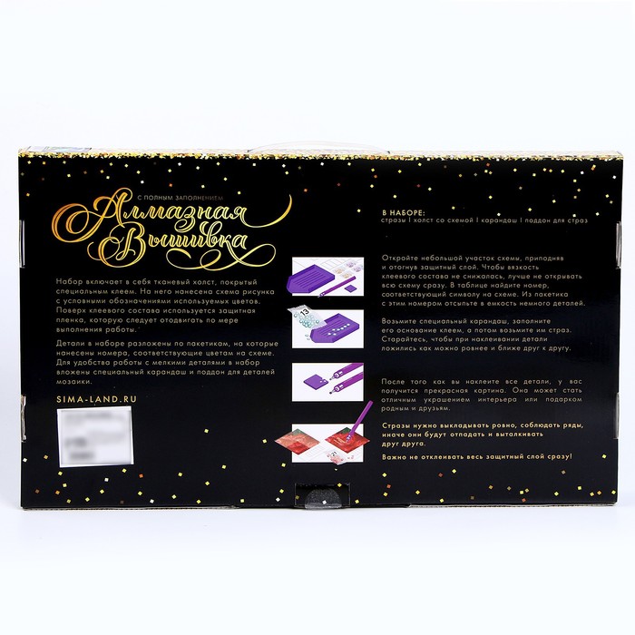 Габариты: 50 x 30 x 4 Страна: Китай В боксе: 10 шт Состав: Пластик, текстиль Материалы: пластик, текстиль Фасовка: по 1 шт Сертификат: Не подлежит сертификации Количество цветов: 20 Для кого: Унисекс Размер, см: 40 х 50 Ширина, см: 40 Высота, см: 50 Возраст: Для взрослых Тематика: Природа, Пейзаж, Морская тематика Ориентация изображения: Вертикально Материал для аппликации: Стразы Тип выкладки: С полным заполнением Тип: Алмазная мозаика Форма страз: Круглые Тип основы: Холст (без подрамника) Фиксированная цена: Да Этот набор позволит создать настоящий шедевр своими руками! Разложите кристаллики с помощью карандаша по указанной схеме, заполнив полотно. Тканевая основа с точечным клеевым покрытием будет надёжно удерживать стразы. На картине уже обозначены необходимые оттенки. Часть картины предстоит заполнить стразами, другая часть напечатана на холсте-основе — такое изделие легче и быстрее создать. Поэтому набор подойдёт для тех, кто впервые пробует свои силы в этой технике или любит быстро добиваться результата. Сияющее полотно украсит любой интерьер и станет отличным подарком для близких. Комментарии к товару