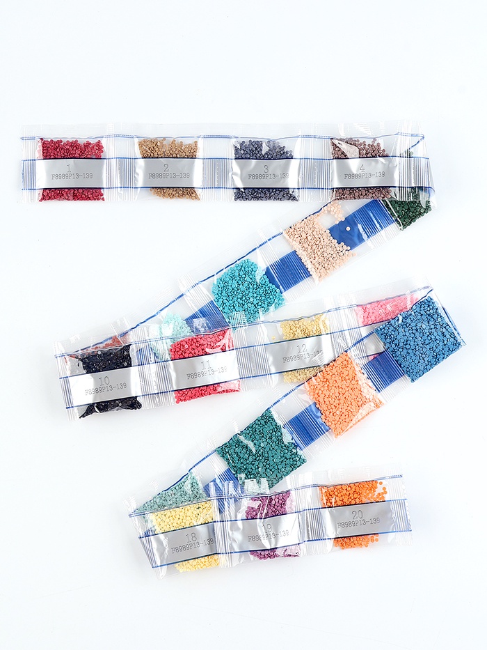 Вам предстоит разложить кристаллики карандашом по пронумерованной схеме. Холст с клеевым покрытием будет надёжно удерживать стразы.