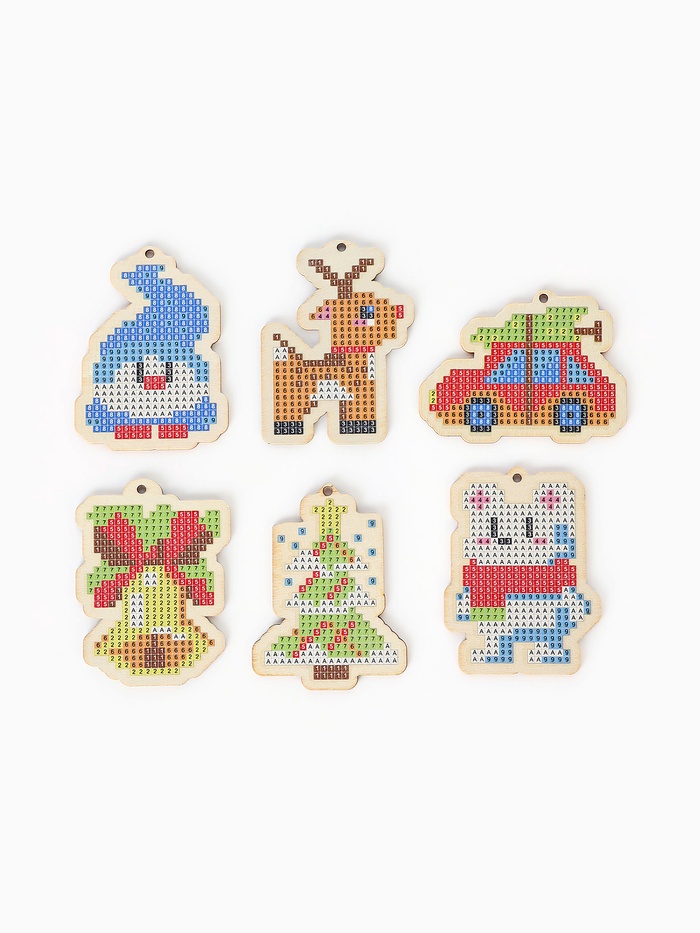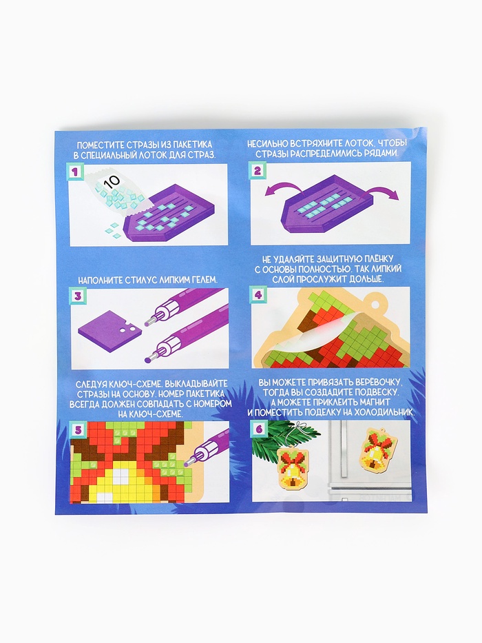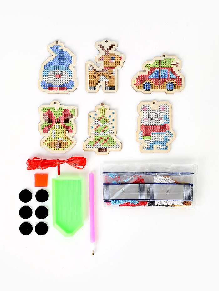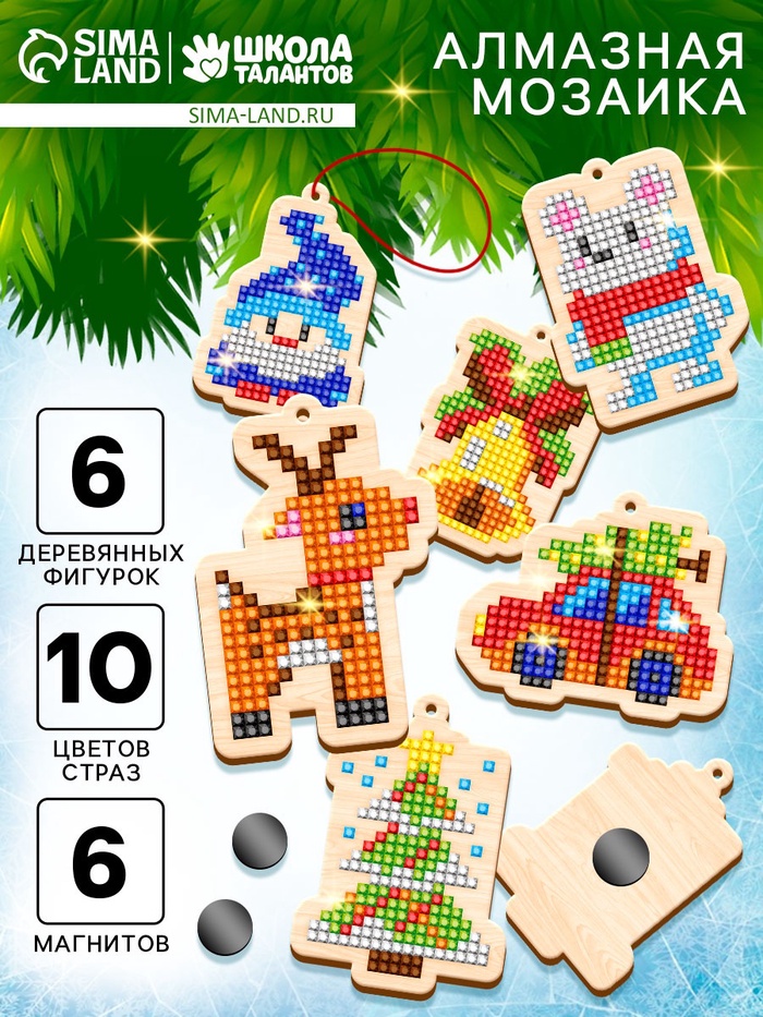Габариты: 16 x 14 x 1,5 Страна: Китай В боксе: 130 шт В наборе: 6 шт Состав: Дерево, магнит, пластик, текстиль Материалы: дерево, магнит, пластик, текстиль Фасовка: по 10 шт Индивидуальная упаковка: Пакет Габариты товара: 15 см × 15 см × 0,5 см Сертификат: Не подлежит сертификации Количество цветов: 10 Для кого: Унисекс Возраст: От 3 лет Тематика: Новогодняя Символ года: Нет Тематика праздника: Новый год Адресат: Без адресата Возраст: Детский Материал: Текстиль, Пластик, Дерево, Магнит Тип выкладки: С полным заполнением Форма страз: Квадратные Тип основы: Фигурка Алмазная мозаика «Сказочные мелочи» — набор для детского творчества. Ребёнку предстоит украсить деревянные подвески яркими стразами и создать собственные новогодние украшения. Готовые изделия можно повесить на ёлку, прикрепить как магнит или подарить друзьям. Такой набор развивает усидчивость, фантазию и мелкую моторику, превращая подготовку к празднику в увлекательную игру. В набор входит: