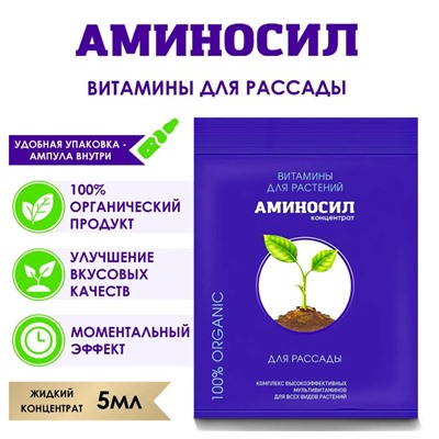 Удобрение Аминосил проникает внутрь семян и активирует работу клеток, благодаря чему увеличивается энергетический потенциал, необходимый для пробуждения растения. Аминокислоты, макро- и микро-элементы в концентрате находятся в легкоусвояемой форме, активно проникают в межклеточное пространство и действуют сразу. Полученный раствор витаминов Вы можете применять при поливе на всех комнатных растениях и рассаде. Это даст полноценное питание на 2 недели.
