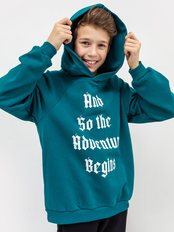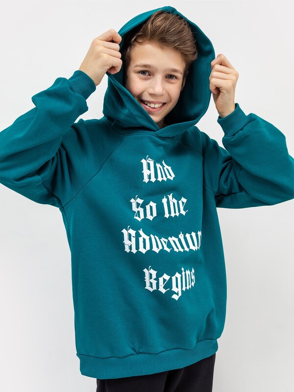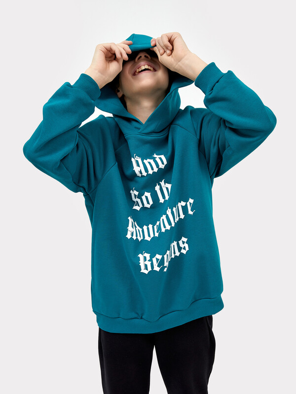Утепленное худи для мальчиков, выполненное из дегкого трикотажного футера. Силуэт прямой, расслабленный. Вырез круглый, с объемным капюшоном. Рукава длинные и объемные, с манжетами. Мальчику наверняка понравятся принты и цвет этого худи