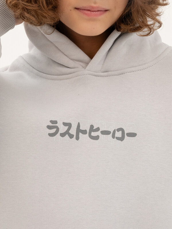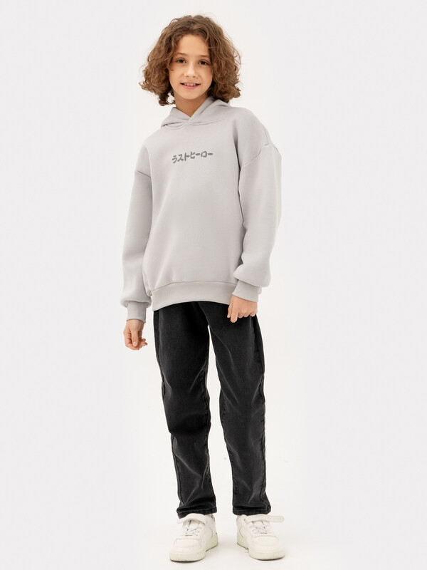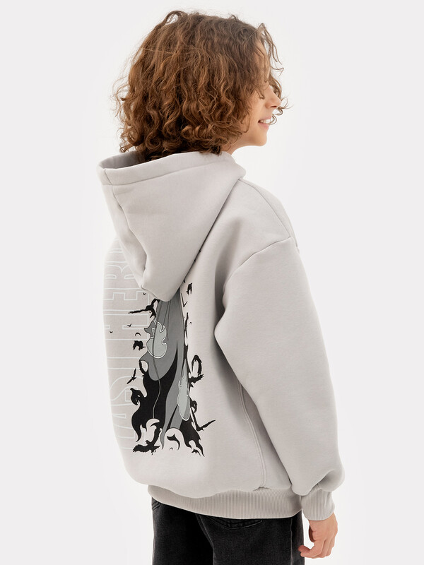 Анорак прямого силуэта с капюшоном. Линия плеча спущена. Рукава длинные, втачные. Горловина круглой формы. Капюшон на подкладке из кулирного полотна. В боковых швах полочки и спинки декоративные вставки из основного полотна. По низу изделия пояс из рибаны. По низу рукавов манжеты из рибаны.