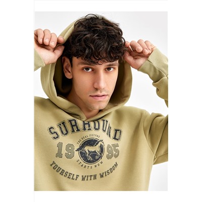 ID товара: 962104 Состав: 65% Хлопок; 35% Полиэстер Сезон: Осень/Зима Рукав: длинные Вид застежки: Без застежки Вырез горловины: Капюшон Рисунок: Надпись Тип карманов: Кенгуру Декоративные элементы: Без элементов Покрой: свободный Уход: Деликатная стирка при 30 градусах Фактура материала: Футер с подчесом Страна бренда: Беларусь Страна производства: Белоруссия Мужское худи свободного силуэта из трикотажного футера с теплым подчесом. Круглая горловина с капюшоном, длинные рукава на манжетах, слегка спущенная линия плеча, пояс из рибаны – худи удачно сочетает комфортный дизайн и отличное качество! Комментарии к товару