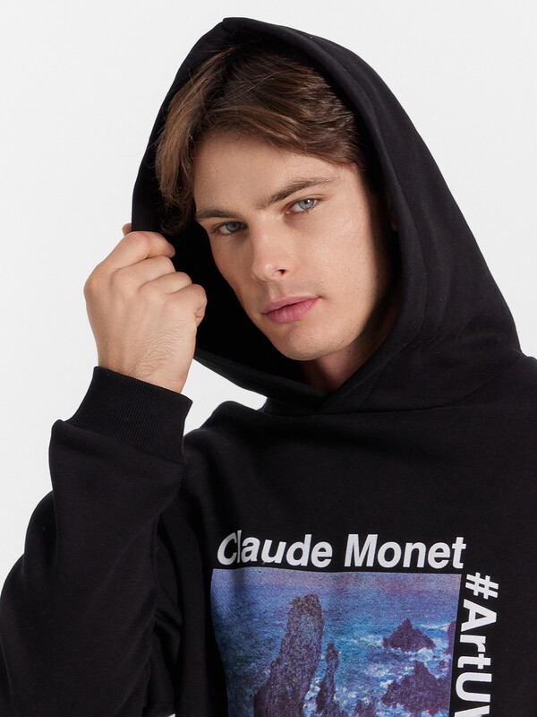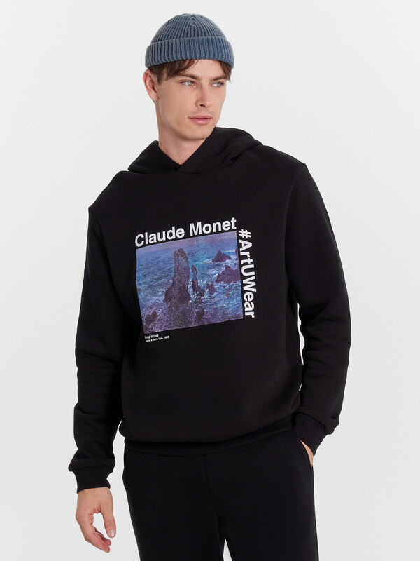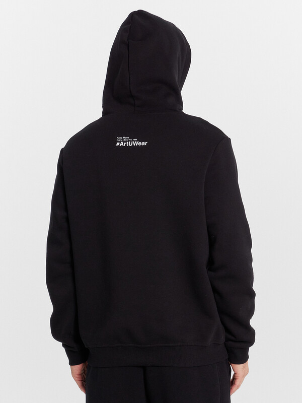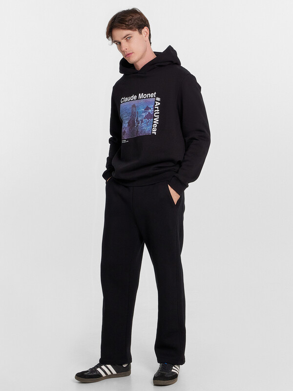 Мужское худи прямого силуэта, слегка посаженное на пояс. Выполнено из трикотажного футера с теплым подчесом. Горловина круглая, с уютным капюшоном, который спереди идет внахлест. Рукава длинные, на манжетах. Есть вместительный карман-кенгуру. Слегка спущенная линия плеча и немного углубленная пройма дарят свободу движений. Отличное худи для стильных образов!