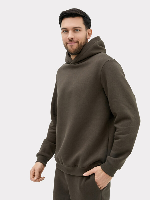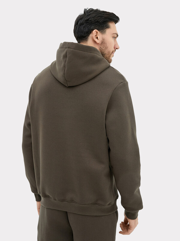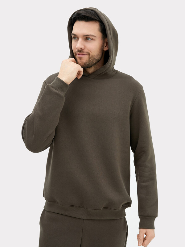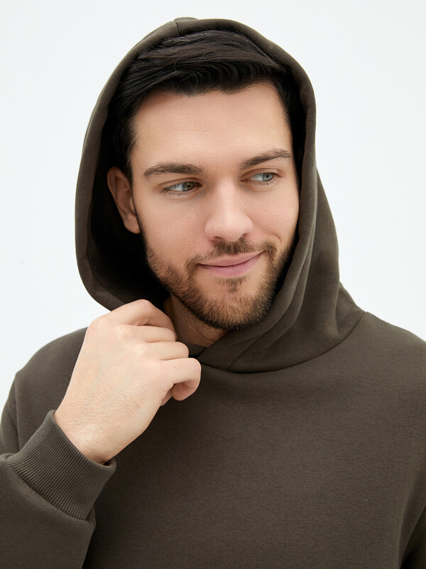 Мужское худи прямого силуэта, слегка посаженное на пояс. Выполнено из трикотажного футера с теплым подчесом. Горловина круглая, с уютным капюшоном, который спереди идет внахлест. Рукава длинные, на манжетах. Есть вместительный карман-кенгуру. Слегка спущенная линия плеча и немного углубленная пройма дарят свободу движений. Отличное худи для стильных образов!