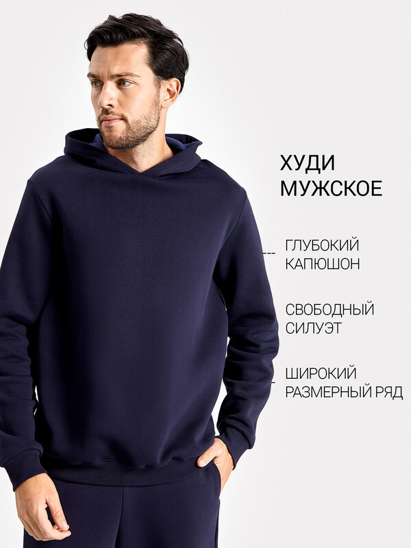 Производитель: Mark Formelle Мужское худи прямого силуэта, слегка посаженное на пояс. Выполнено из трикотажного футера с теплым подчесом. Горловина круглая, с уютным капюшоном, который спереди идет внахлест. Рукава длинные, на манжетах. Есть вместительный карман-кенгуру. Слегка спущенная линия плеча и немного углубленная пройма дарят свободу движений. Отличное худи для стильных образов!