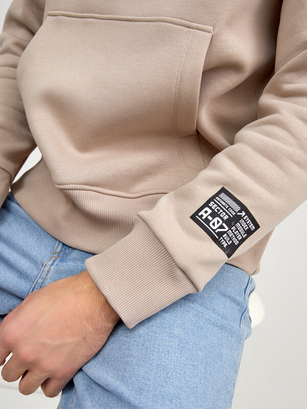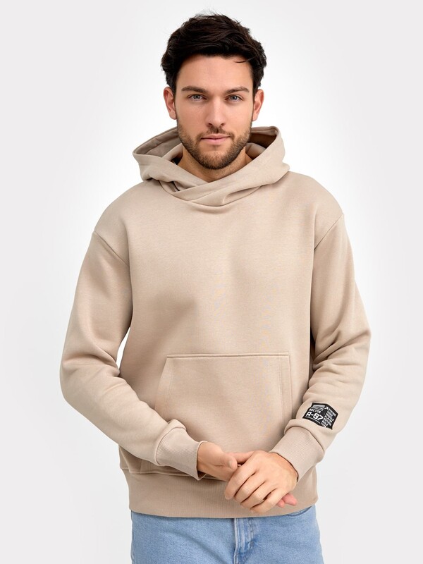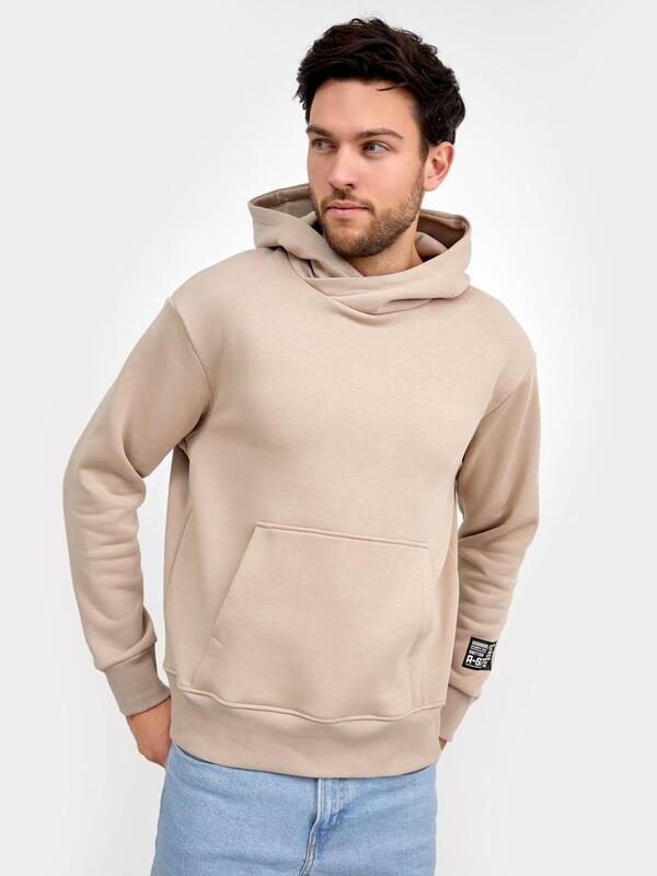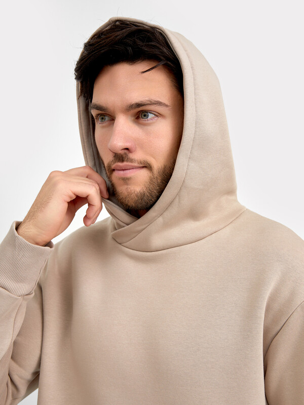 Мужское худи из трикотажного футера с теплым подчесом. Удобный карман-кенгуру, круглая горловина с капюшоном, длинные рукава на манжетах, спущенная линия плеча, пояс из рибаны – это худи удачно сочетает в себе комфорт, актуальный дизайн и качество!