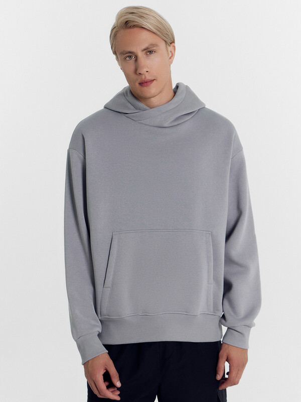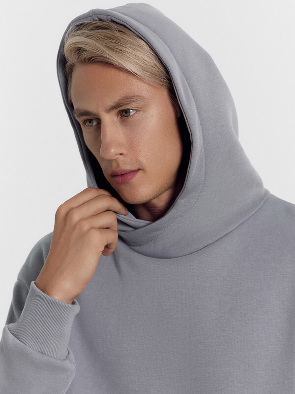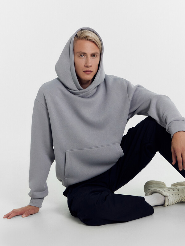 Мужское худи из трикотажного футера с теплым подчесом. Удобный карман-кенгуру, круглая горловина с капюшоном, длинные рукава на манжетах, спущенная линия плеча, пояс из рибаны – это худи удачно сочетает в себе комфорт, актуальный дизайн и качество!