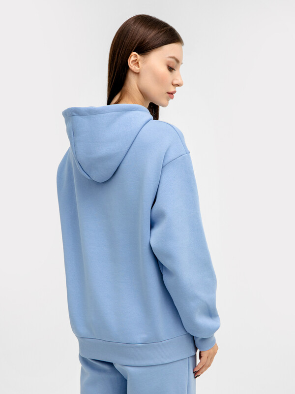 Худи свободного оверсайз-силуэта, выполненное из трикотажного футера с теплым подчесом. Приспущенная линия плеча, просторный капюшон и длинные широкие рукава на манжетах дарят свободу движения и уют. В боковых швах, смещенных в сторону переда, обработаны карманы. Отличное худи для занятий спортом и повседневного ношения. Рекомендуем!
