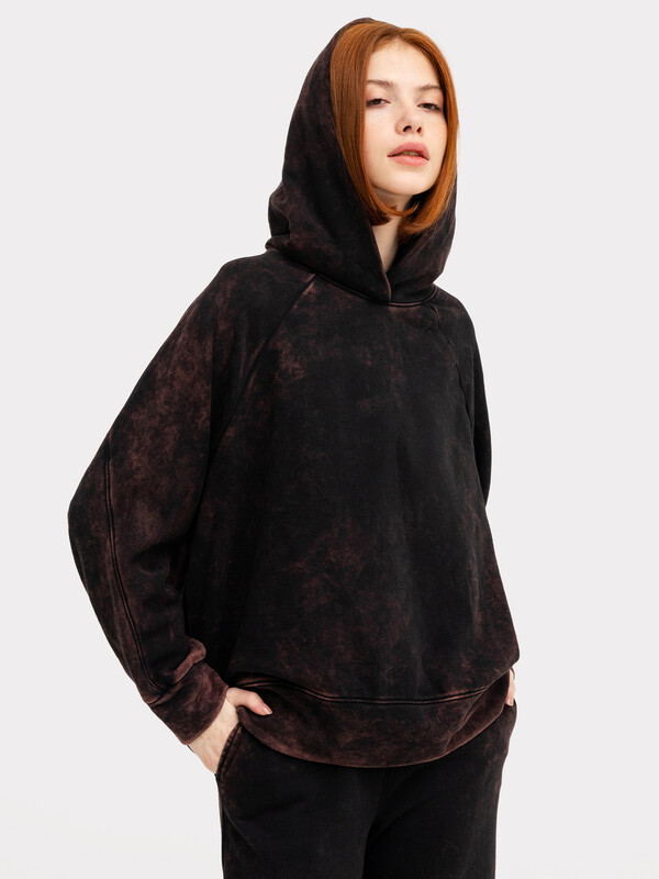Базовое худи женское свободного силуэта из высококачественного хлопка. Материал изделия - нежный футер с подчесом. Вырез круглой формы, с уютным капюшоном. Рукава типа реглан, с широкими манжетами. Изюминкой худи является горизонтальный шов-членение на спинке и широкий свободный в нижней части. Худи женское с капюшоном имеет расслабленный силуэт. Если вам нужен базовый и универсальный вариант, который можно комбинировать со множеством вещей, тогда эта модель для вас. Стильное и удобное, в линейке широкий размерный ряд, такое худи женское подойдет на женскую фигуру любого типа. В линейке много разных расцветок, есть спокойные и яркие цвета, а также модели с интересными принтами. Отличное худи женское свободное для спортивных занятий, домашнего отдыха и прогулок. Купить худи женское недорого можно у нас на сайте или магазине Mark Formelle. Рекомендуем!