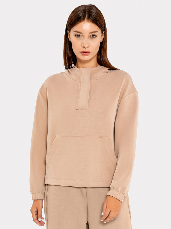 Анорак изготовлен из трикотажного полотна интерлок.Анорак свободного силуэта с капюшоном.