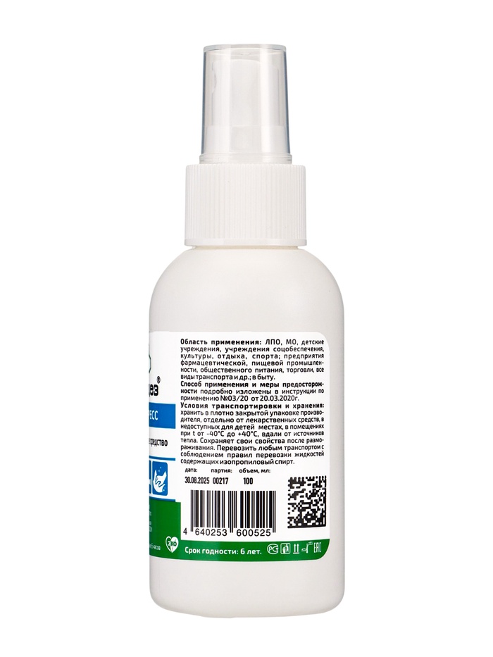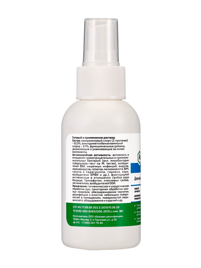 Состав: В качестве действующих веществ содержит: изопропиловый спирт (2-пропанол) — 63,5% и алкилдиметилбензиламмоний хлорид — 0,1%, а также функциональные добавки.