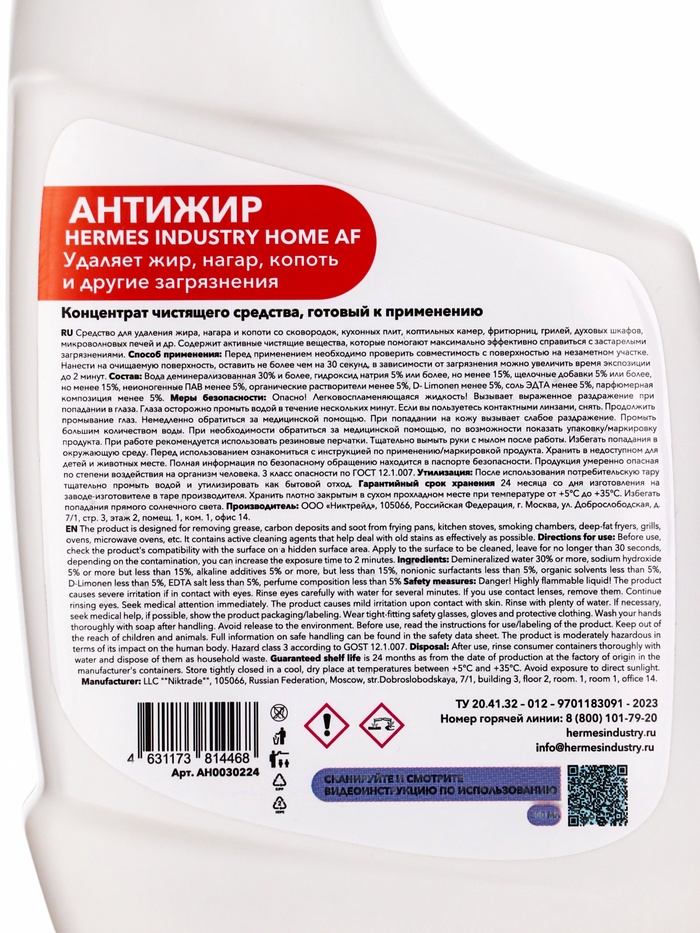 Hermes Industry HOME антижир — это незаменимый продукт для любой кухни. Он поможет вам легко и быстро справиться с жирными загрязнениями, обеспечивая долгосрочные результаты и поддерживая порядок в вашем доме. Без усилий и долгих оттираний ваши поверхности будут чистыми и блестящими, а кухня наполнится свежестью и чистотой. Комментарии к товару