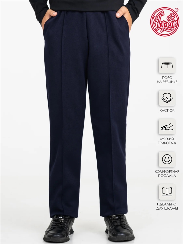 Брюки для мальчика выполнены из плотного полотна с рельефным рисунком, выполненным с применением жаккардового плетения. Изделие на эластичном поясе, имеет удобные карманы и декоративные отстрочки-стрелки. Отличный вариант для школы! Уход: только машинная стирка (руками не стирать!) при температуре 40 градусов, без предварительного замачивания.