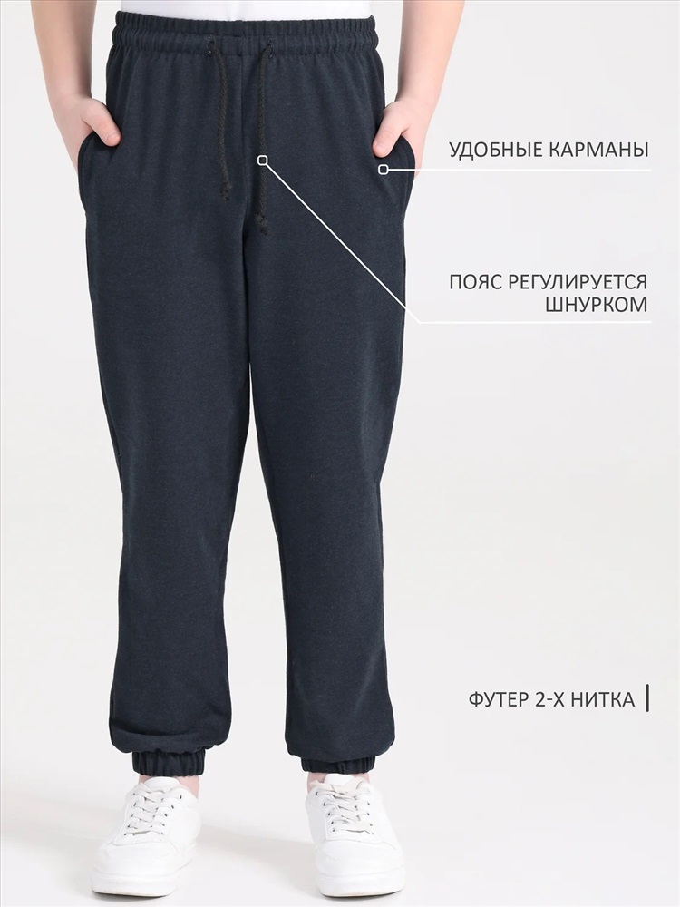Стильные джоггеры для мальчика выполнены из футера - плотного хлопкового полотна. Изделие на эластичном поясе с завязками, удобными карманами и манжетами на эластичной тесьме. Уход: только машинная стирка (руками не стирать!) при температуре 40 градусов, без предварительного замачивания.