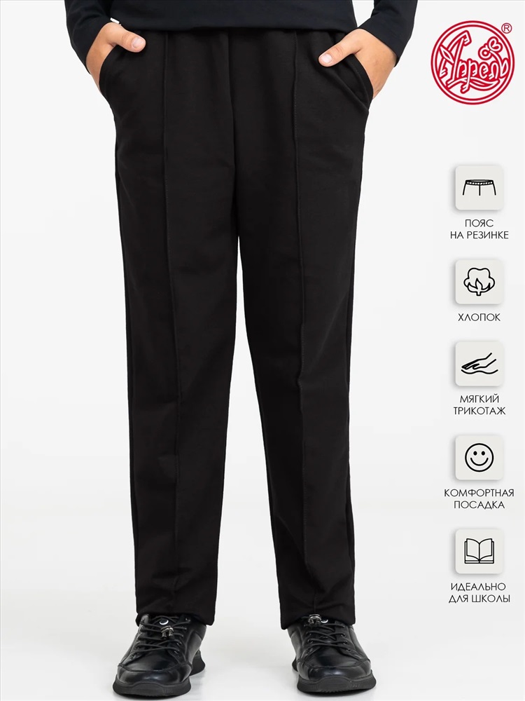 Брюки для мальчика выполнены из футера - мягкого плотного хлопкового полотна с лайкрой. Изделие на эластичном поясе, имеет удобные карманы и декоративные отстрочки-стрелки. Отличный вариант для школы! Уход: только машинная стирка (руками не стирать!) при температуре 40 градусов, без предварительного замачивания.