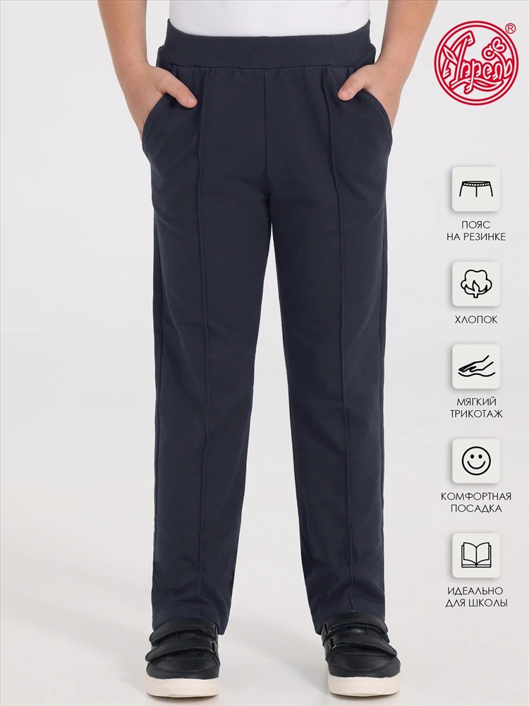 Брюки для мальчика выполнены из футера - плотного хлопкового полотна с лайкрой. Изделие на эластичном поясе, имеет удобные карманы и декоративные отстрочки-стрелки. Отличный вариант для школы! Уход: только машинная стирка (руками не стирать!) при температуре 40 градусов, без предварительного замачивания.